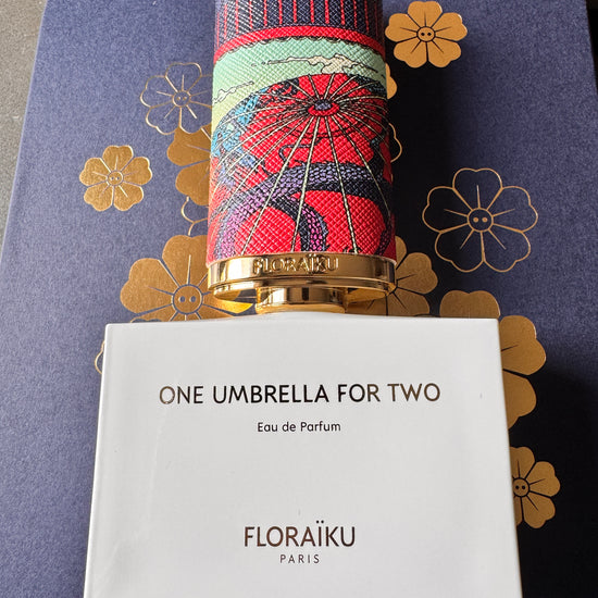 One Umbrella for Two, a sweet, fruity and gourmand Blackcurrant absolute encounters a Genmaicha Tea extract and a Cedarwood oilto form a perfect matching trio.